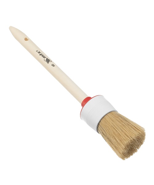 Круглая кисть MTX №8 82078 диаметром 35 мм, с натуральной щетиной и деревянной ручкой, пригодится в быту для окрашивания узких длинных поверхностей. Светлая натуральная свиная щетина с добавлением искусственной обладает высокой износоустойчивостью и может использоваться для нанесения красок с содержанием растворителей, а также масляных красок и лаков.