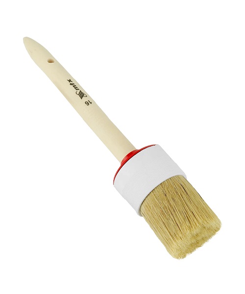 Круглая кисть MTX №16 82086 диаметром 55 мм, с натуральной щетиной и деревянной ручкой, пригодится в быту для окрашивания узких длинных поверхностей. Светлая натуральная свиная щетина с добавлением искусственной обладает высокой износоустойчивостью и может использоваться для нанесения красок с содержанием растворителей, а также масляных красок и лаков.