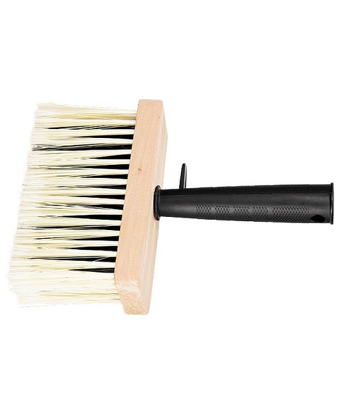 Преимущества: Возможность многократного использования — щетина тщательно проклеена и надежно закреплена в деревянном корпусе, поэтому не осыпается во время работы. Эффективное окрашивание — расщепленная на концах щетина способна набирать и равномерно отдавать большой объем лакокрасочного материала. Функциональность — полая рукоятка адаптирована под использование удлиняющих стержней, что позволяет работать на большой высоте и в труднодоступных местах без использования подмостей или стремянки. Эргономичность — при помощи специального выступа на рукоятке кисть можно закрепить на краю ведра, ванночки или банки с краской, отверстие в ручке позволяет подвешивать инструмент на крючок или гвоздь.