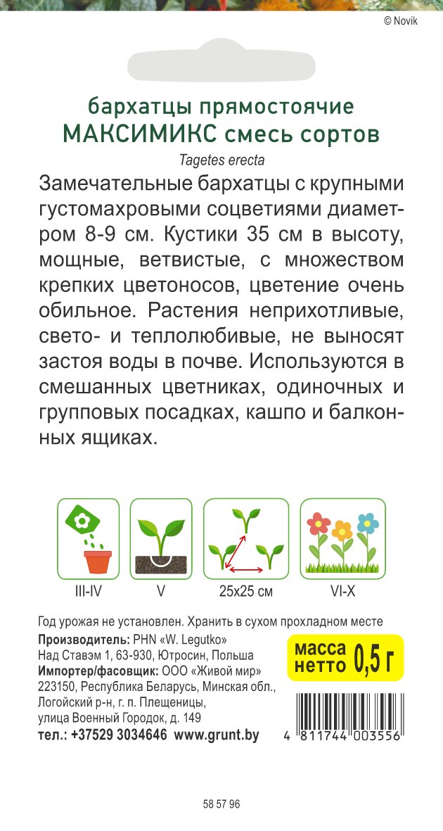 Бархатцы пр. Максимикс смесь сортов (W. Legutko) 0,5 г, РБ