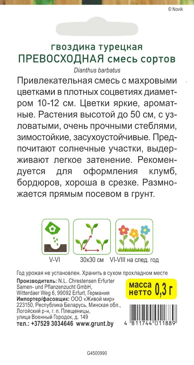 Гвоздика турецкая Превосходная махр. смесь (N.L.Chrestensen) 0,3 г, РБ