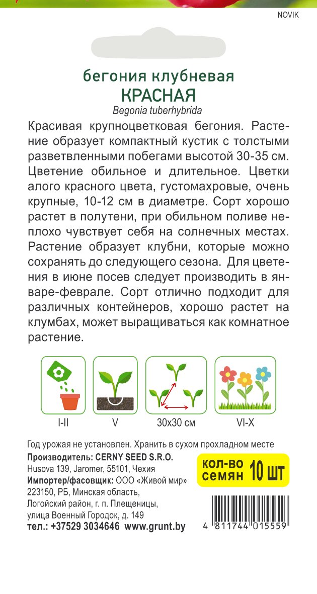 Бегония клубневая Красная (Cerny seed) 10 шт, РБ