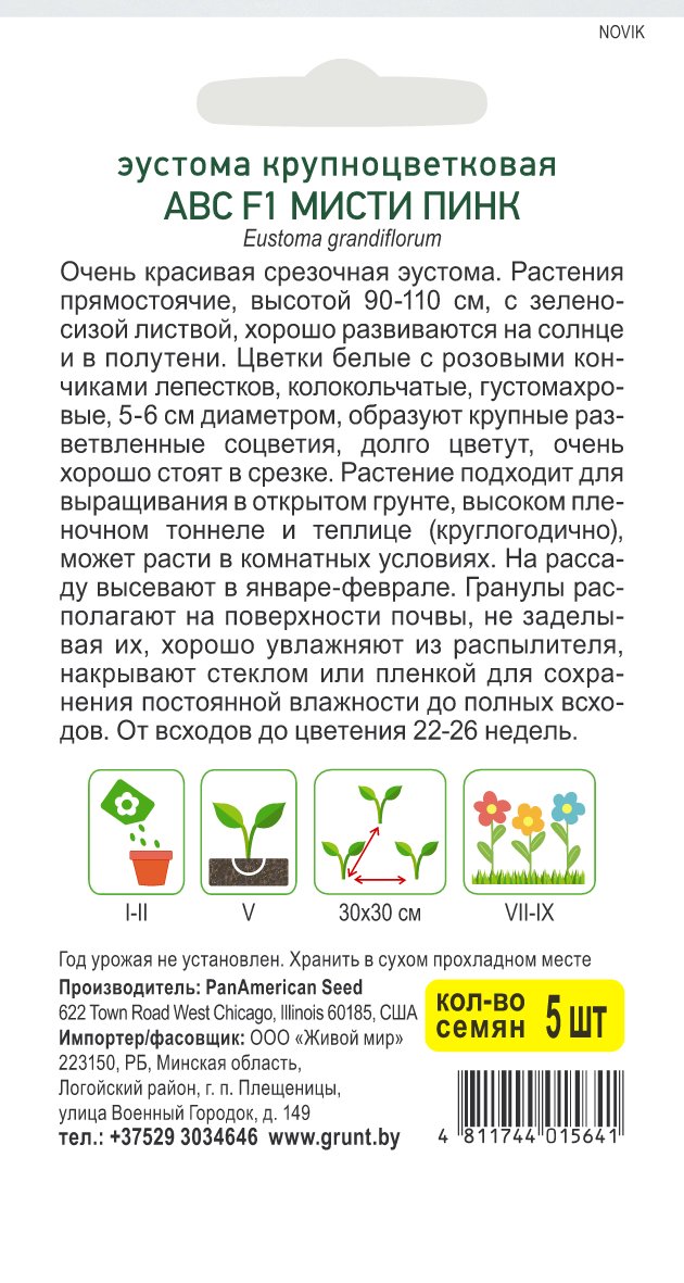Эустома АВС Мисти Пинк (PanAmerican Seed) 5 шт, РБ