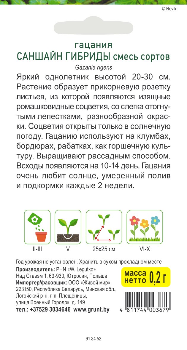 Гацания Саншайн гибриды смесь сортов (W. Legutko) 0,2 г, РБ