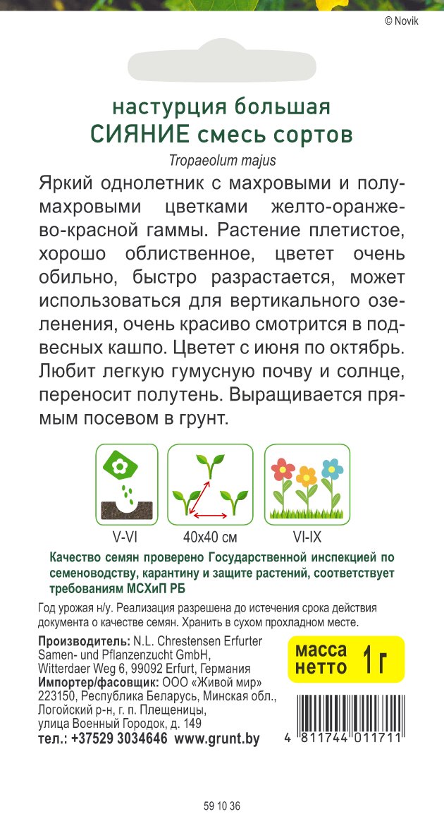 Настурция большая Сияние смесь (N.L.Chrestensen) 1 г, РБ