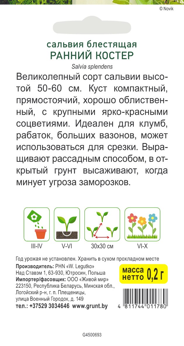 Сальвия блестящая Ранний костер (W. Legutko) 0,2 г, РБ