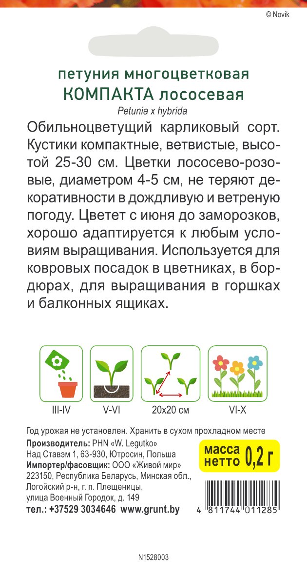 Петуния многоцветковая Компакта лососевая (W. Legutko) 0,2 г, РБ