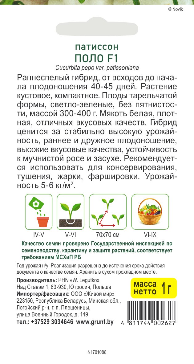 Патиссон Поло F1 (W. Legutko) 1 г, РБ