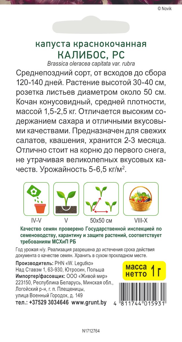 Капуста краснокоч. Калибос (W. Legutko) 1 г, РБ