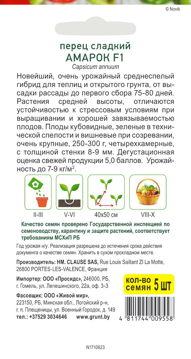 Перец сладкий Амарок F1 (Clause) 5 шт, РБ