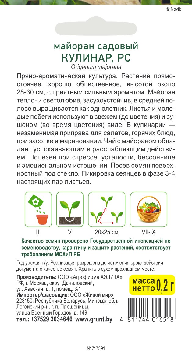 Майоран садовый Кулинар (Аэлита) 0,2 г, РБ