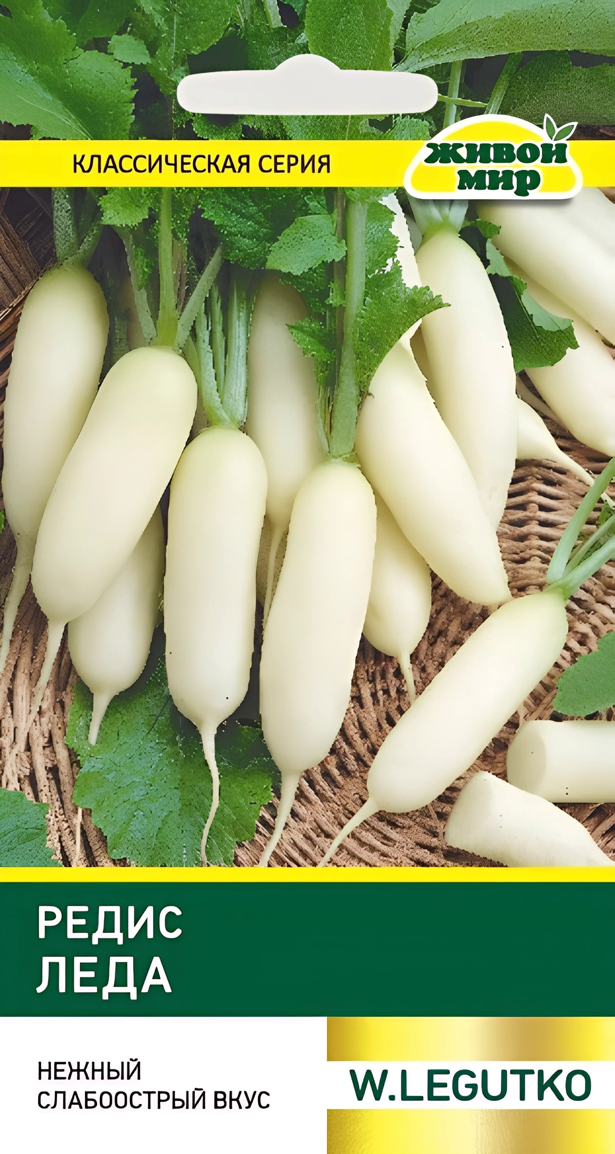 Мякоть белая, стекловидная, сочная и хрустящая, слабоострого вкуса.