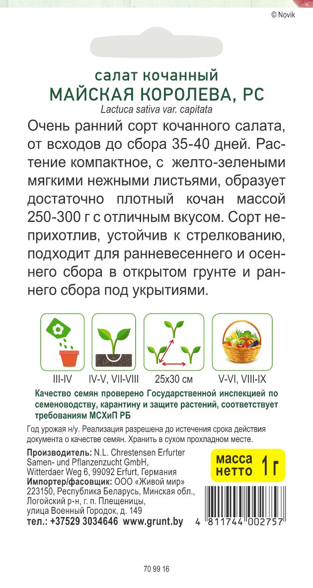 Салат кочанный Майская королева (N.L.Chrestensen) 1 г, РБ