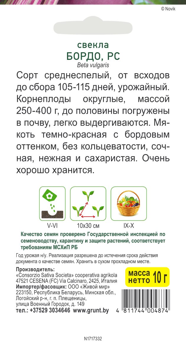 Свекла Бордо (Sativa) 10 г, РБ