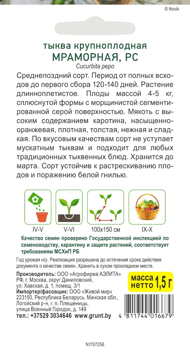 Тыква Мраморная крупноплодная (Аэлита) 1,5 г, РБ