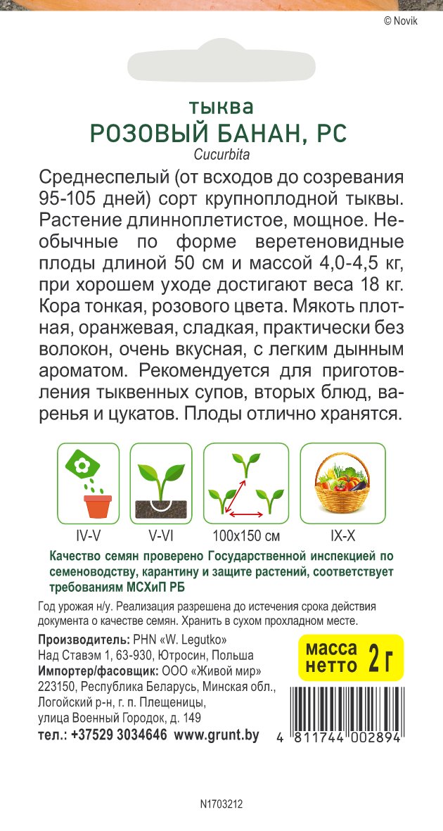 Тыква Розовый банан крупноплодная (W. Legutko) 2 г, РБ