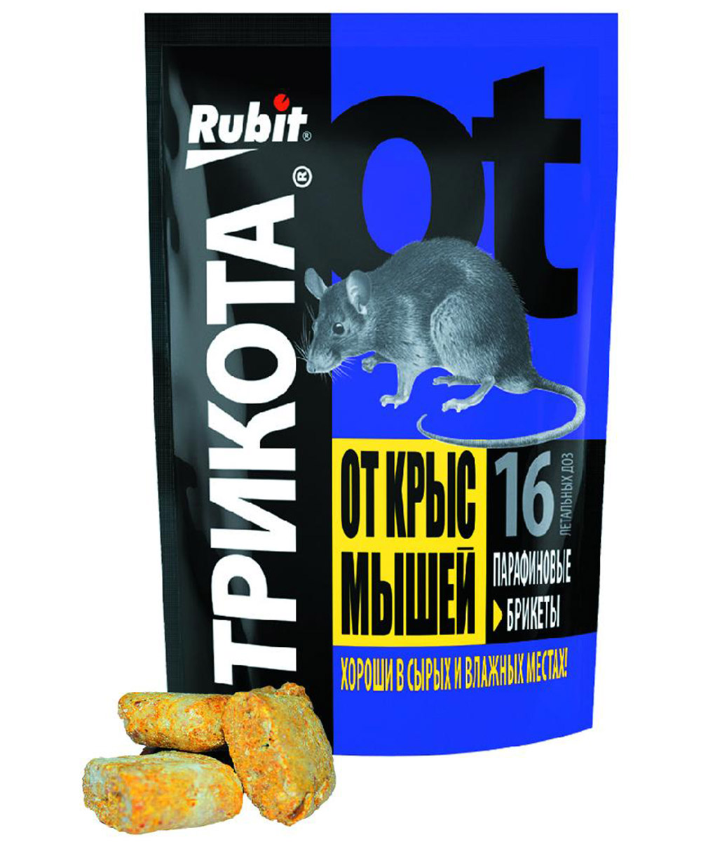 Характеристика: высокоэффективное средство борьбы с мышевидными грызунами - достаточно однократного поедания. Обладает высокой привлекающей способностью для крыс и мышей. Активно даже в отношении грызунов, не чувствительных к другим ядам. Вызывает удушье мышей и крыс - гибель наступает, как правило, на открытых местах, а не в норах. Приманка не вызывает отпугивающего действия и настороженности других особей, т.к. гибель грызунов происходит через 3-6 суток после поедания брикетов. Расход: 1 брикет на 1 мышь и 2-3 брикета на 1 крысу.