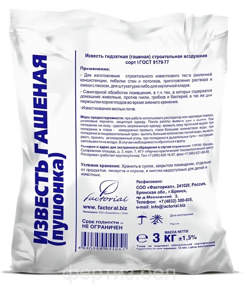 Известь гашеная (пушонка) 3 кг, РФ