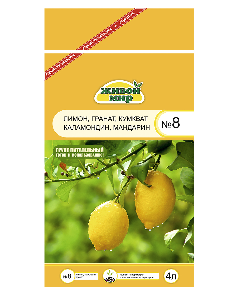 Высококачественный, полностью готовый к применению специальный грунт для выращивания следующих растений: цитрусовые - лимон, мандарин, кумкват, каламондин и другие; банан, гранат, пассифлора, ардизия, соланум, кофе