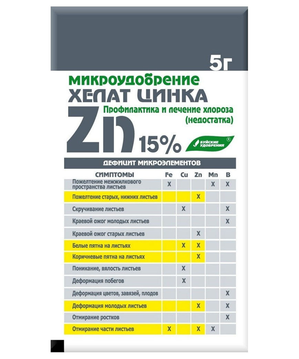 Для полива и опрыскивания овощных, плодово-ягодных, горшечных, цветочно-декоративных культур в качестве профилактики недостатка (хлороза) цинка.