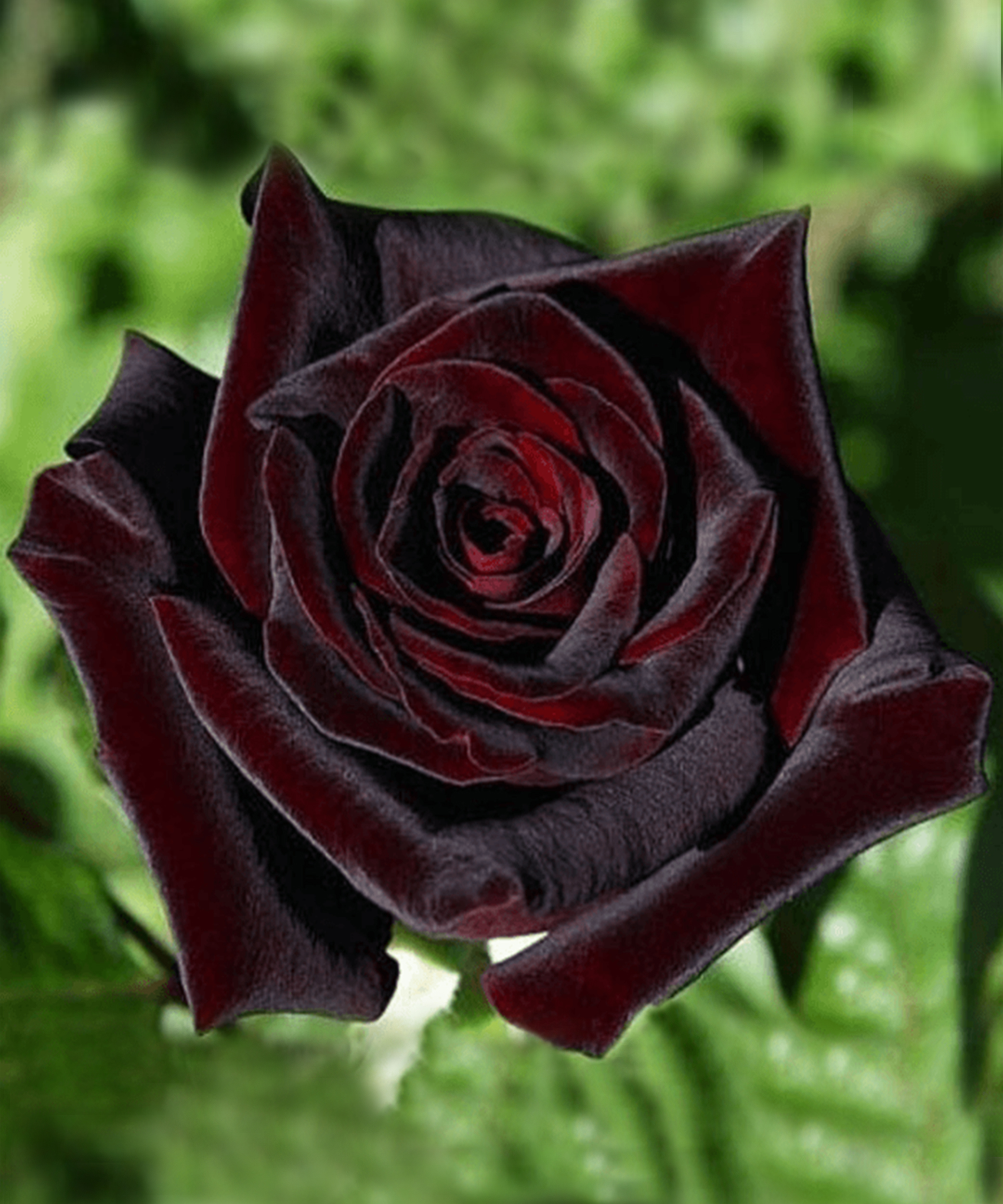 Самая "черная" роза в мире. Цветочки бархатные цвета красного бургундского вина с черным отливом, лепестки треугольные, скрученные. Аромат легкий, еле уловимый. Кусты прямостоячие высотой до 1 м, аккуратные, на стеблях почти нет шипов, у листочков красноватый оттенок. Устойчива к вредителям и болезням. Предпочитает кислые почвы и полутень.