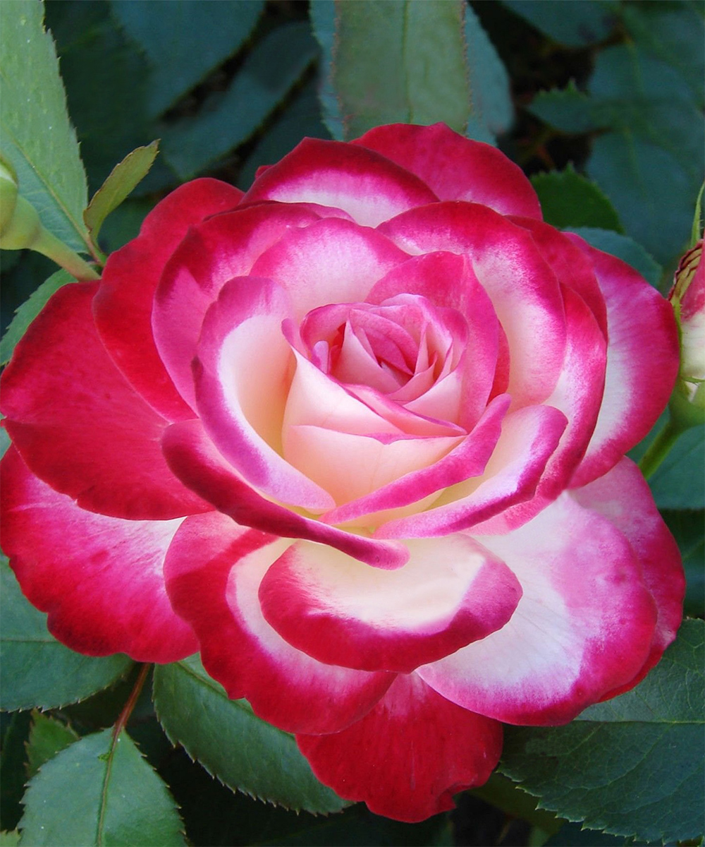 Один из наиболее удачных гибридов в своей группе. Цветки замечательной окраски – ярко-карминовые или вишнево-розовые, с почти белой изнанкой лепестков. Контраст вызывающий и очень красивый. Цветки густомахровые, чашевидные, с легким ароматом. Куст сильнорослый, раскидистый, высотой до 130 см. Листва темно-зеленая, крупная, блестящая, устойчивая к болезням. Обильно цветет повторно – иногда самые роскошные цветки появляются именно осенью. Зимостойкость сорта хорошая, высокоустойчива к болезням и насекомым-вредителям.