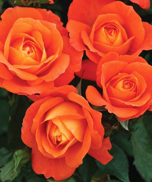 Роза с сияющими медно-оранжевыми цветками диаметром 7-9 см, цветет все лето до первых морозов. Цветки держат окраску в любую погоду. Бутоны бледно желтые, по мере роспуска меняют окраску на ярко-оранжевую. Сильный ветвистый куст высотой 70-80 см, с темно-зеленой листвой и прекрасной устойчивостью к заболеваниям. Аромат легкий, приятный.
