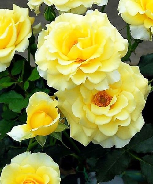 Сильнорослая плетистая роза. Цветки крупные, 10-11 см, лимонно-желтые, красивой бокаловидной формы, густомахровые, обычно появляются по одному, как у чайно-гибридных роз, в первое цветение, и кистями, как у флорибунд, в повторное. Аромат довольно насыщенный, фруктовый. Куст прямостоячий, зимостойкий, с крупной блестящей листвой, достигает 3-4 м.