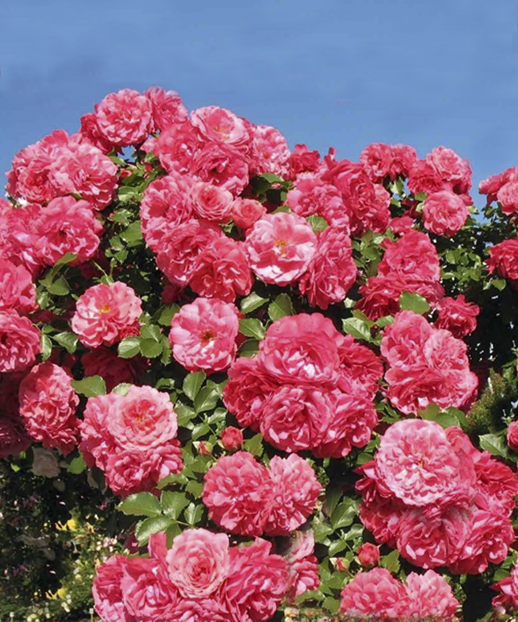 Знаменитый немецкий сорт плетистой розы. Крупные (10-12 см) густомахровые цветки насыщенного ярко-розового цвета, приобретающие серебристый оттенок. Аромат легкий. Куст мощный, высотой до 3-4 м, крона широкая, побеги дугообразные. Листва плотная, тёмно-зелёная и глянцевая, создаёт выразительный фон для цветков и долго сохраняет декоративность. Побеги хорошо ветвятся, поэтому растение смотрится объёмно и пышно уже со второго года. Отличается высокой зимостойкостью, устойчивостью к болезням и плохой погоде и обильным повторным цветением с лета до заморозков.