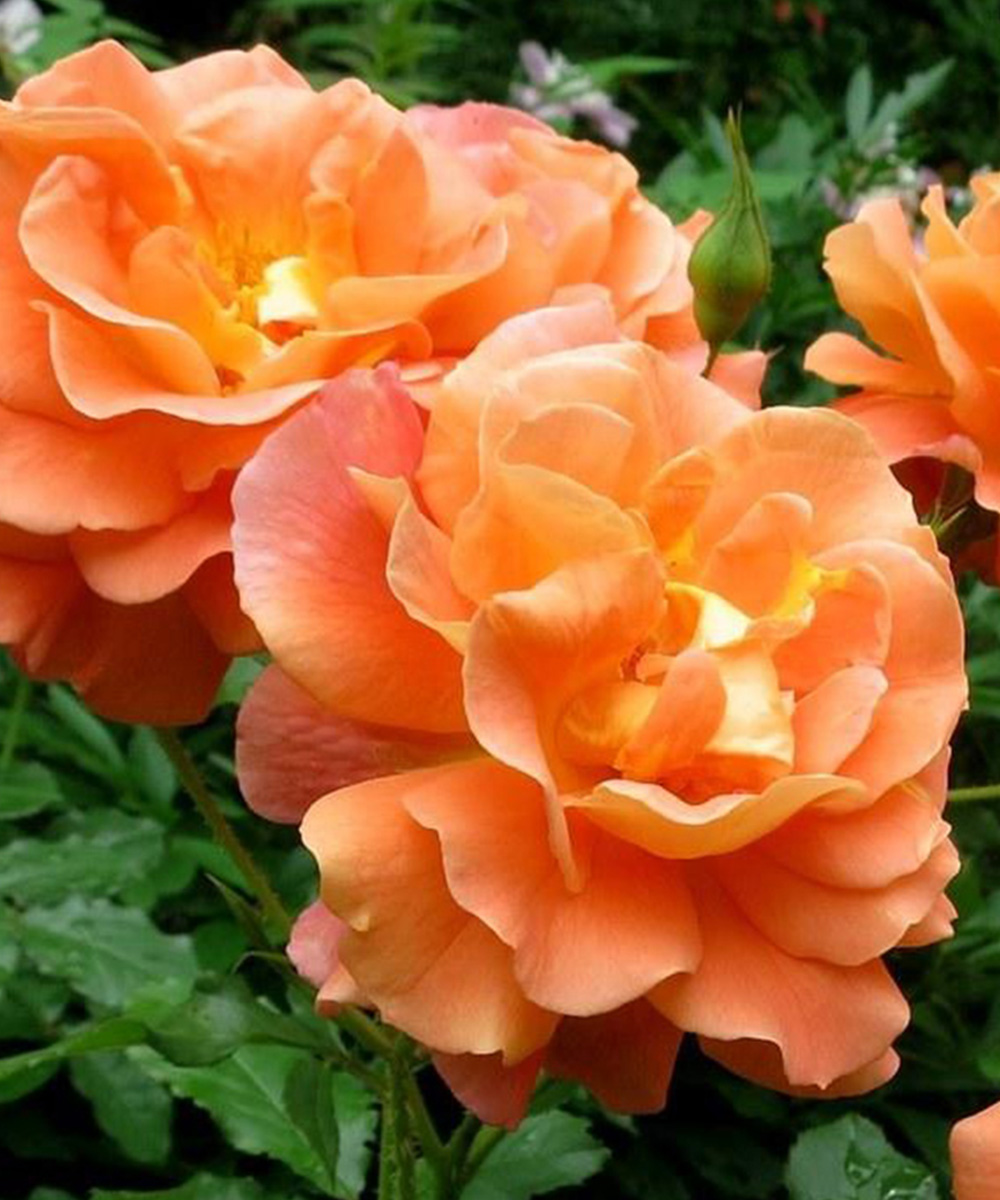Признанная немецкая роза со множеством достоинств. Цветки очень яркие, смесь оранжевого, розового, абрикосового и золотого, крупные, 10-11 см в диаметре, махровые, с волнистыми лепестками, появляются в больших рыхлых кистях по 5-10 шт. Рано начинает цвести и цветет повторно до поздней осени. Листва удлиненная, темная, устойчива к заболеваниям и хорошо оттеняет яркие цветки. Куст сильнорослый, прямостоячий, высотой 160-180 см, хорошо разветвленный и довольно колючий.