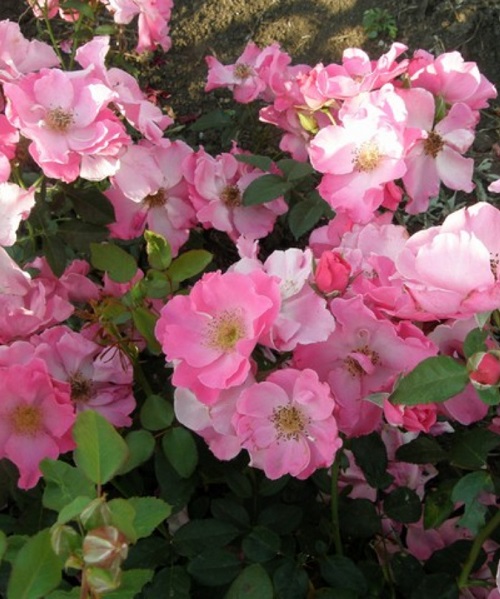 Очень красивая обильно цветущая роза датской селекции. Цветки полумахровые, розового цвета, мелкие (5-8 см), в стебле формирует 5-10 соцветий. Аромат слабый или отсутствует. Обильно повторно цветет. Куст широкий, ветвистый. Листва темно-зеленая, блестящая. Высокая зимостойкость и устойчивость к болезням и погодным условиям.