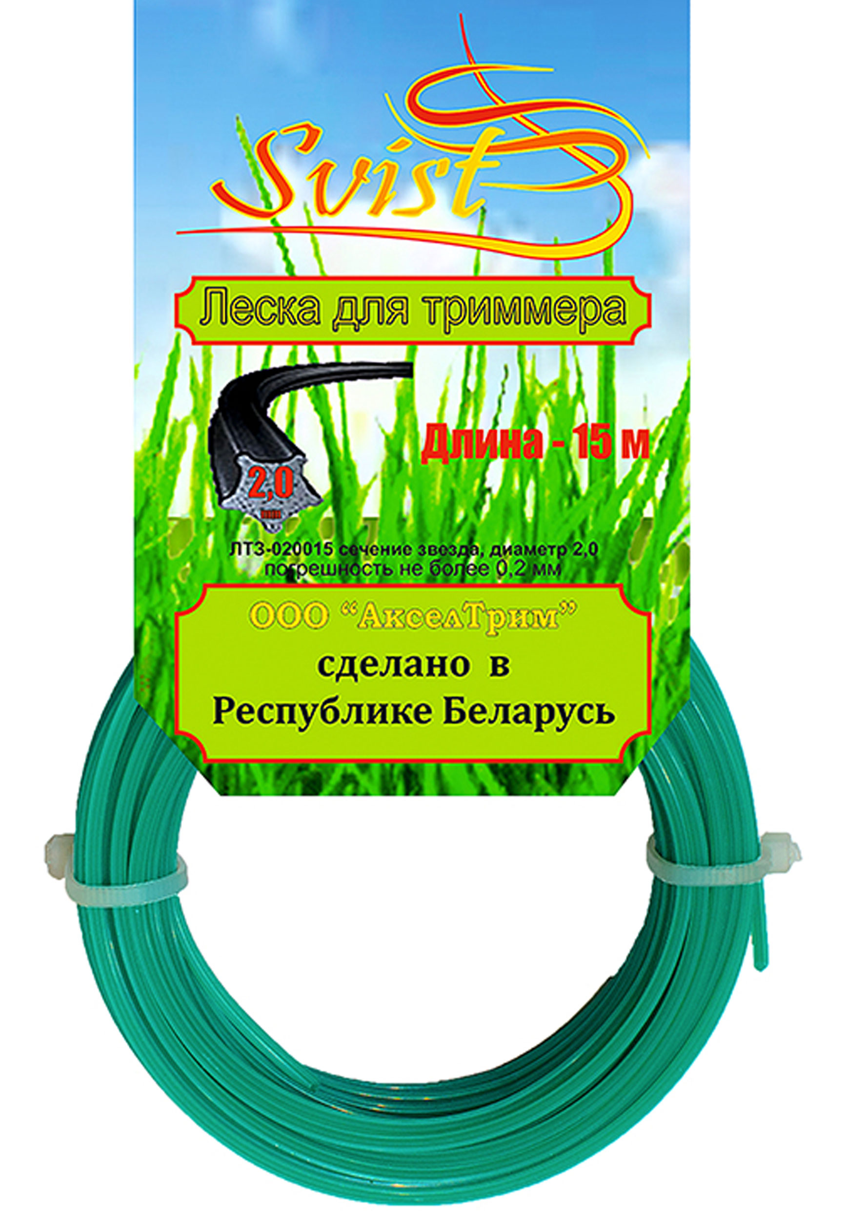 Леска для триммера SVIST, сеч звезда, Ø2,0мм, 15м, Беларусь