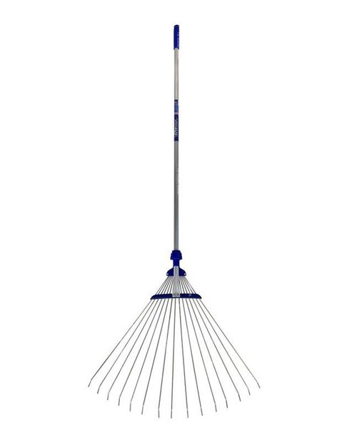 Стильный внешний вид. Конструкция рабочей части - раскладная, фиксатор - цанговый, пластиковый. Тип граблей - веерные проволочные, кол-во зубьев - 15. Ширина в разложенном виде - 550мм.