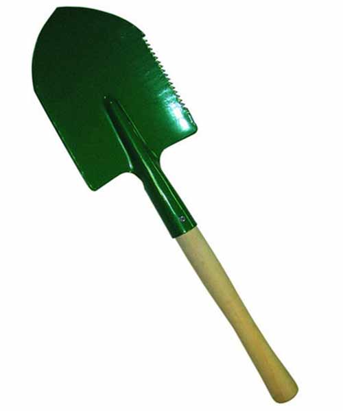 Лопатка имеет черенок и зубчатый край, изготовлена из качественной стали.