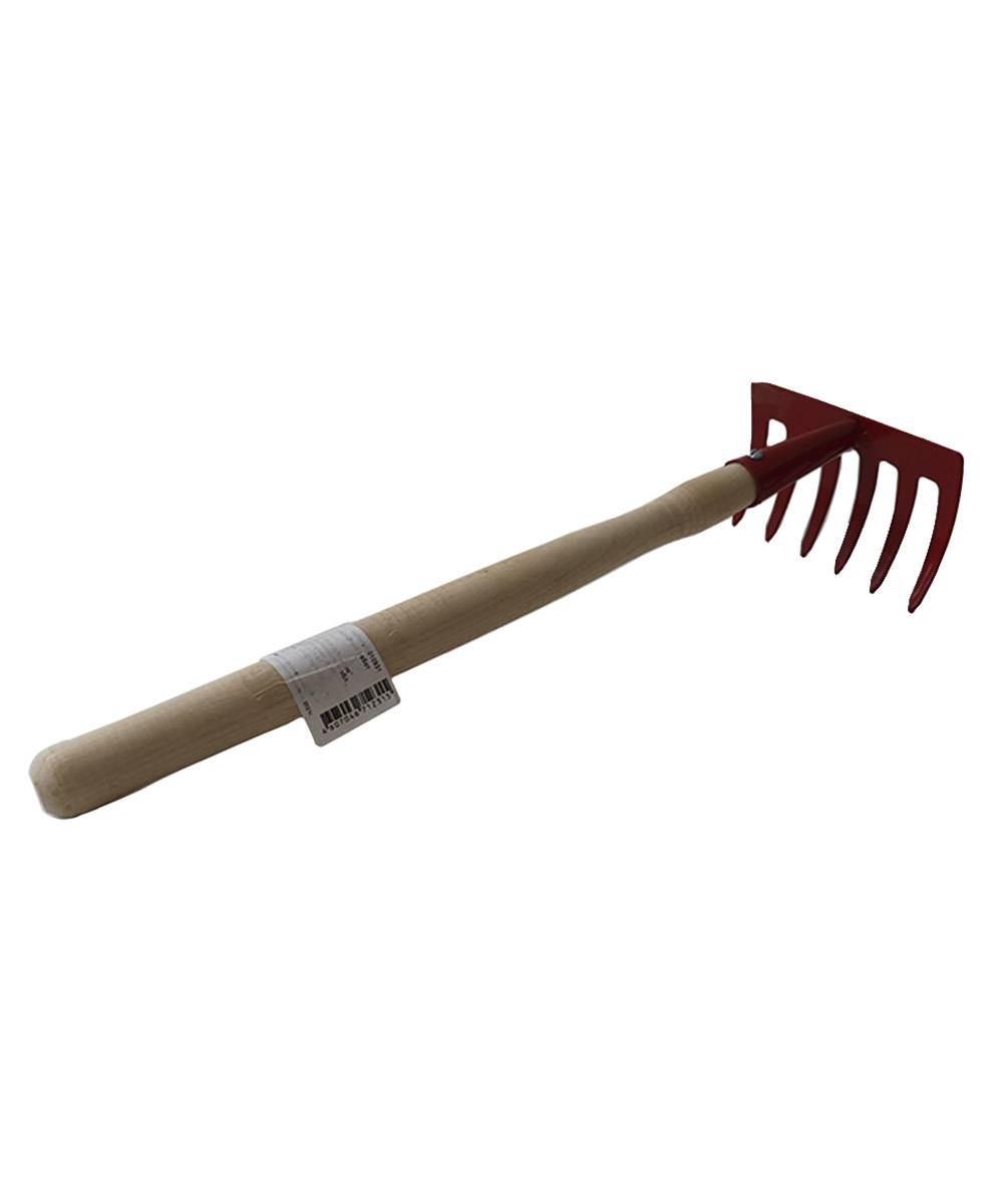 Металлическая рабочая часть в порошковой окраске. 6 прямых зубцов с деревянной ручкой для рыхления почвы и уборки в труднодоступных местах.