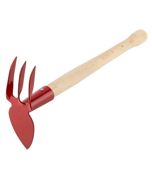 Металлическая рабочая часть в порошковой окраске с деревянной ручкой. Один конец лепесток, другой 3 витых зубца.