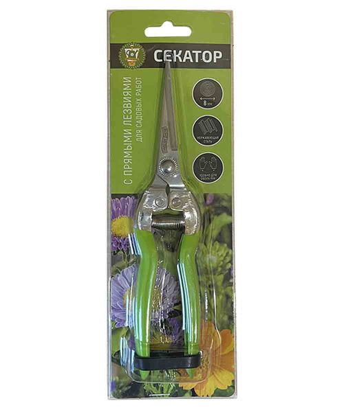Секатор садовый с прямыми лезвиями, L20 см, РФ