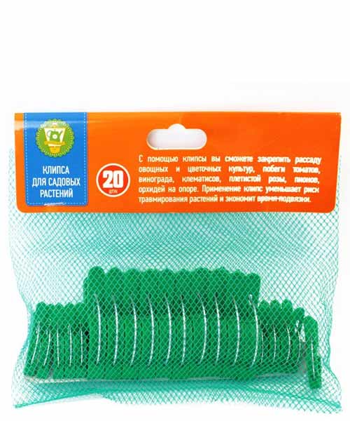 Клипсы поставляются комплектами по 20 штук в упаковке, в двух размерах. Сочетают в себе легкость и простоту использования, не травмируют нежные стебли растений, изготовлены из практичного и качественного материала.
