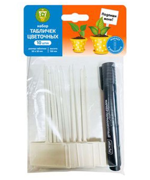 Набор табличек цветочных размер 50х130мм, 10шт, с маркером, РФ
