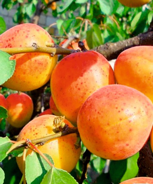 Плоды крупные, округло-овальной формы, оранжевые с румянцем, сочные, ароматные, хорошего вкуса, массой 50-60 г.