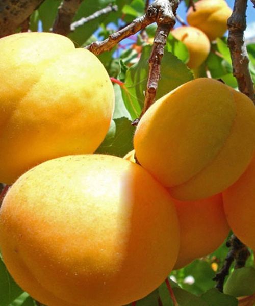 Плоды овально-круглые, жёлто-оранжевые с небольшими салатовыми пятнами, некоторые с багровым румянцем, слегка опушенные, крупные, весом 45-55 г. Кожица кисловатая, мякоть сочная, оранжевая, нежная и сладкая. Косточка большая, легко отделяется от мякоти, со сладким съедобным ядром.