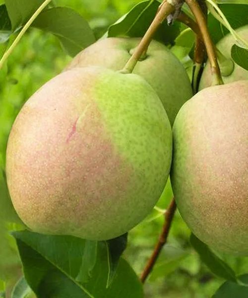 Плоды средней и выше средней величины, весом 140 — 160 г, некоторые до 200 г, округлой или плоскоогруглой формы, короткогрушевидные или яблоковидные, светло-желтые с размытым румянцем. Мякоть бело-кремовая, средней плотности, ароматная, нежная, без каменистых клеток, очень сочная, десертного типа, хорошего и отличного сладкого вкуса, дегустационная оценка 4,5-5 баллов.