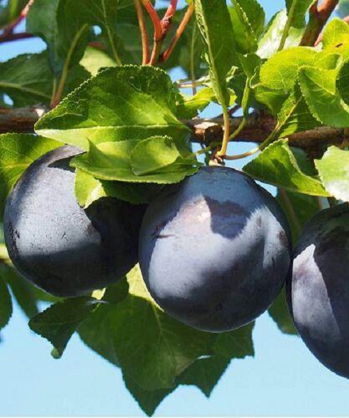 Плоды крупные, массой 60-70 г, удлинённой формы, тёмно-синего цвета с фиолетовым оттенком. Мякоть плотная, кисло-сладкая, десертного вкуса. Косточка маленькая, хорошо отделяется от мякоти.