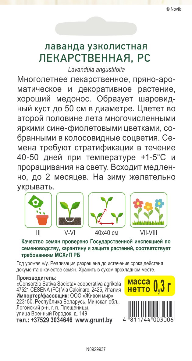 Лаванда узколистная Лекарственная (Sativa) 0,3 г, РБ