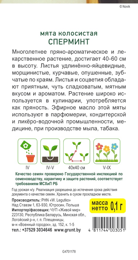 Мята колосистая Сперминт (W. Legutko) 0,1 г, РБ