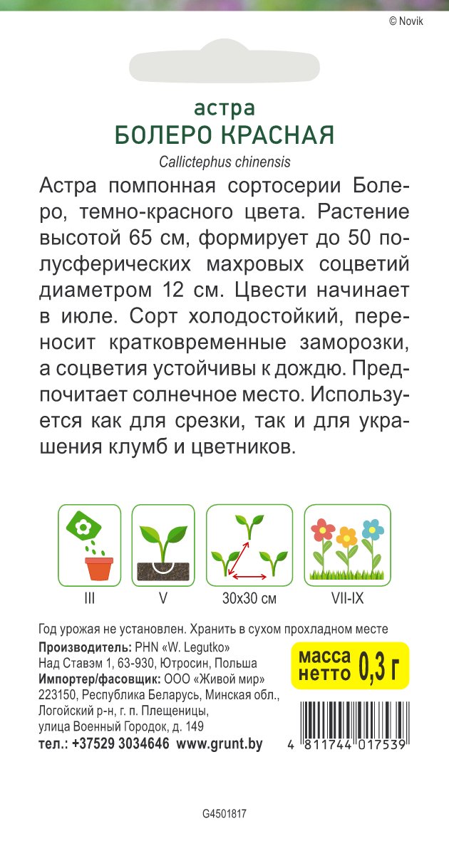 Астра Болеро красная (W. Legutko) 0,3 г, РБ