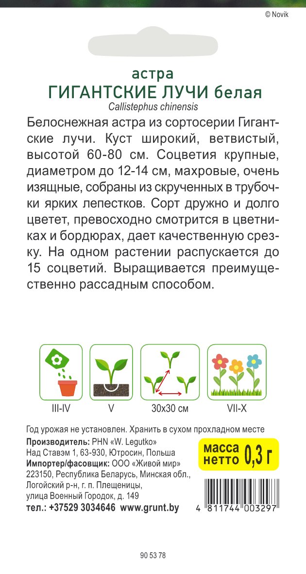 Астра Гигантские лучи белая (W. Legutko) 0,3 г, РБ