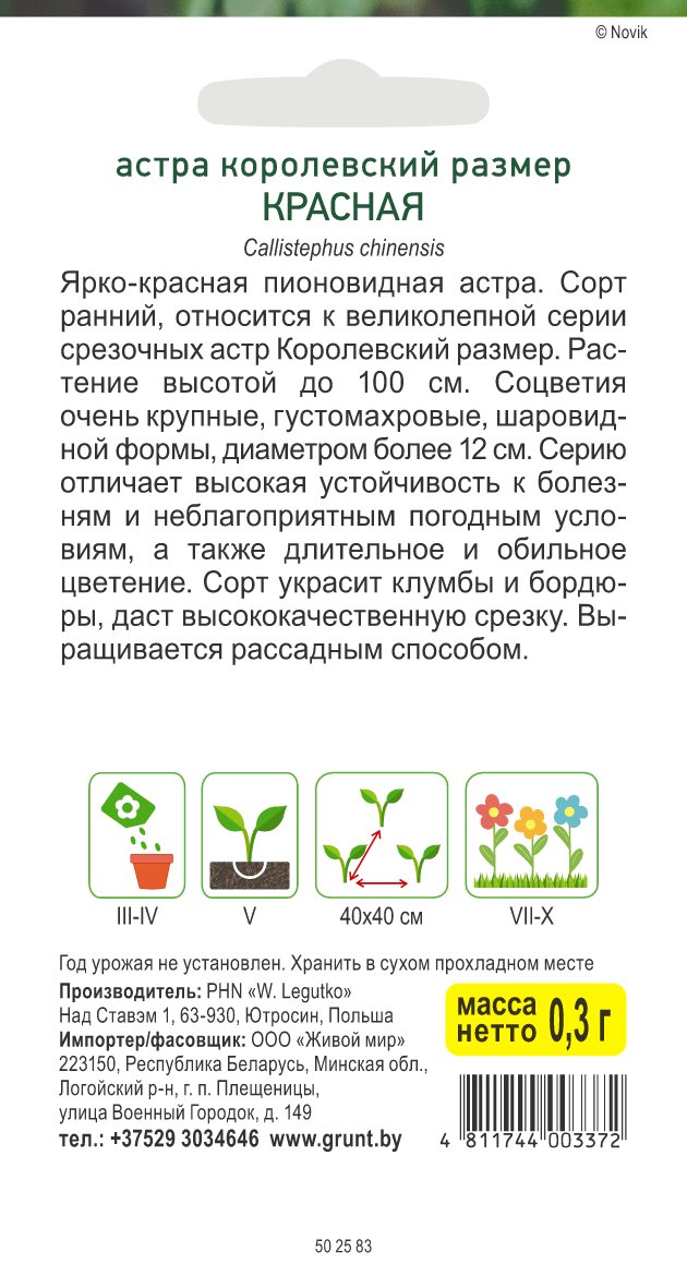 Астра Королевский размер красная (W. Legutko) 0,3 г, РБ
