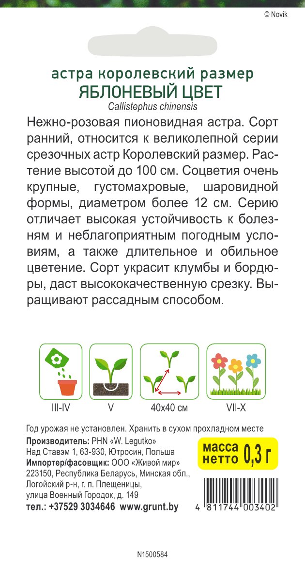 Астра Королевский размер яблоневый цвет (W. Legutko) 0,3 г, РБ