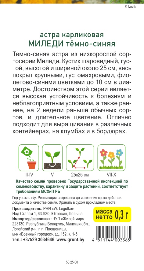 Астра Миледи темно-синяя карликовая (W. Legutko) 0,3 г, РБ